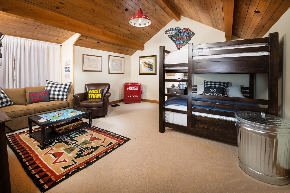 Your Jackson Hole Experience will include amazing views while sitting by the double sided stone wood-burning fireplace...This large 4 Bedroom Luxury Cabin will accommodate your entire group with all the amenities of a 5 Star Hotel! Housekeeping, Luxury Linens and Towels. Fully Stocked Kitchen, Bathroom Amenities and more. Beamed and Vaulted Great Room with a wall of windows overlooking the golf course to the mountains. Enjoy reading a book by the fire or sitting outside on one of the many stone patios to breathe in the fresh mountain air. Dining Alfresco is a fantastic option! Bedroom Configuration: Ground Floor Master Suite with King Sized Bed with Private Patio and Luxury En-Suite Bathroom with Whirlpool. Ground Floor Den with Queen Sized Sleeper Sofa with separate bathroom. Upper Level Grand Master with King Sized Bed, Private Deck, and Amazing Spa Bathroom with Soaking Tub and Large Walk-In Shower. Upper Level Bedroom with Queen Sized Bed with Private En-Suite Bathroom. Upper Level Bunkroom with TWO Queen Sized Bunk Beds with Private En-Suite Bathroom and Sitting Area. Amazing Gourmet Kitchen with SubZero and Wolf Appliances with Breakfast Bar! Hearth Room with 65" Flat Screen TV and Wood Burning Fireplace! Dining Room with Seating for 8. Great Room is vaulted and beamed with AMAZING views onto the mountains, wood burning fireplace. Curated Art and Photography Collection with Designer Furnishings! This property is located minutes from all the world-class amenities of Jackson Hole including 2 world class ski mountains, the Snake River, Grand Teton National Park and Yellowstone National Park. Explore all that is Jackson Hole and The Tetons! This is a rare gem property perfectly situated in Jackson Hole!