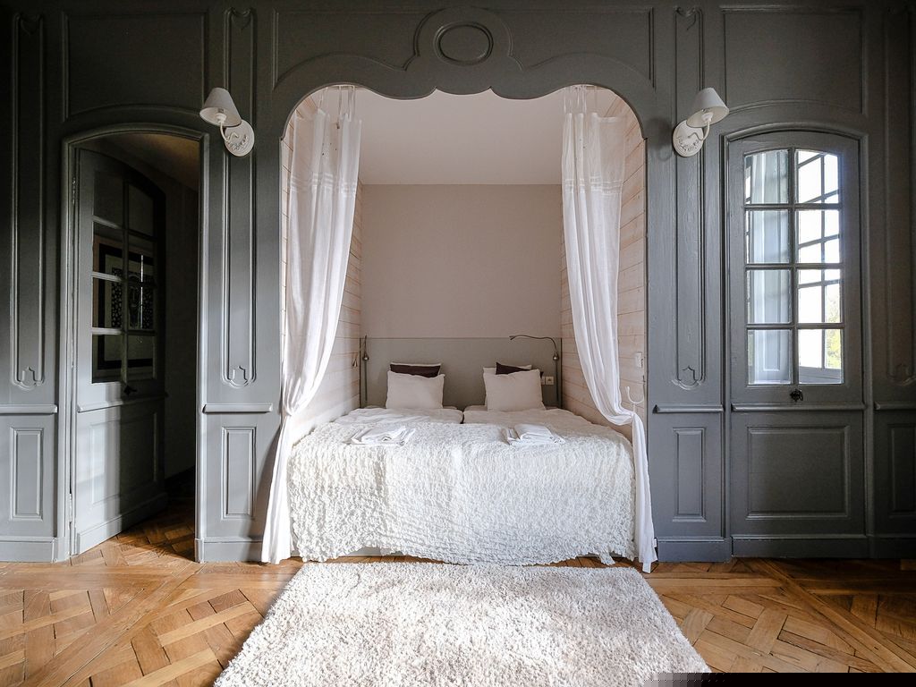 French 18th century castle which sleeps 16 guests in 8 bedrooms, all with super king beds. The chateau dates from 1732. Having first belonged to a supposed mistress of King Louis XIV, whose daughter Sophie was a close friend of the french writer and philosopher Denis Diderot, prominent figure during the Enlightenment, who stayed twice at the chateau, it becomes much later the property of designer Karl Lagerfeld. The property extends over several hectares of park and forest.The access to the chateau is done by a stone bridge, passing the moats which surround the chateau. The pool area has been created near the old farm of the castle and its dovecote. The property is located in the Champagne region, 10 minutes from a large lake. The nearest champagne producers are about 30 kilometers away.