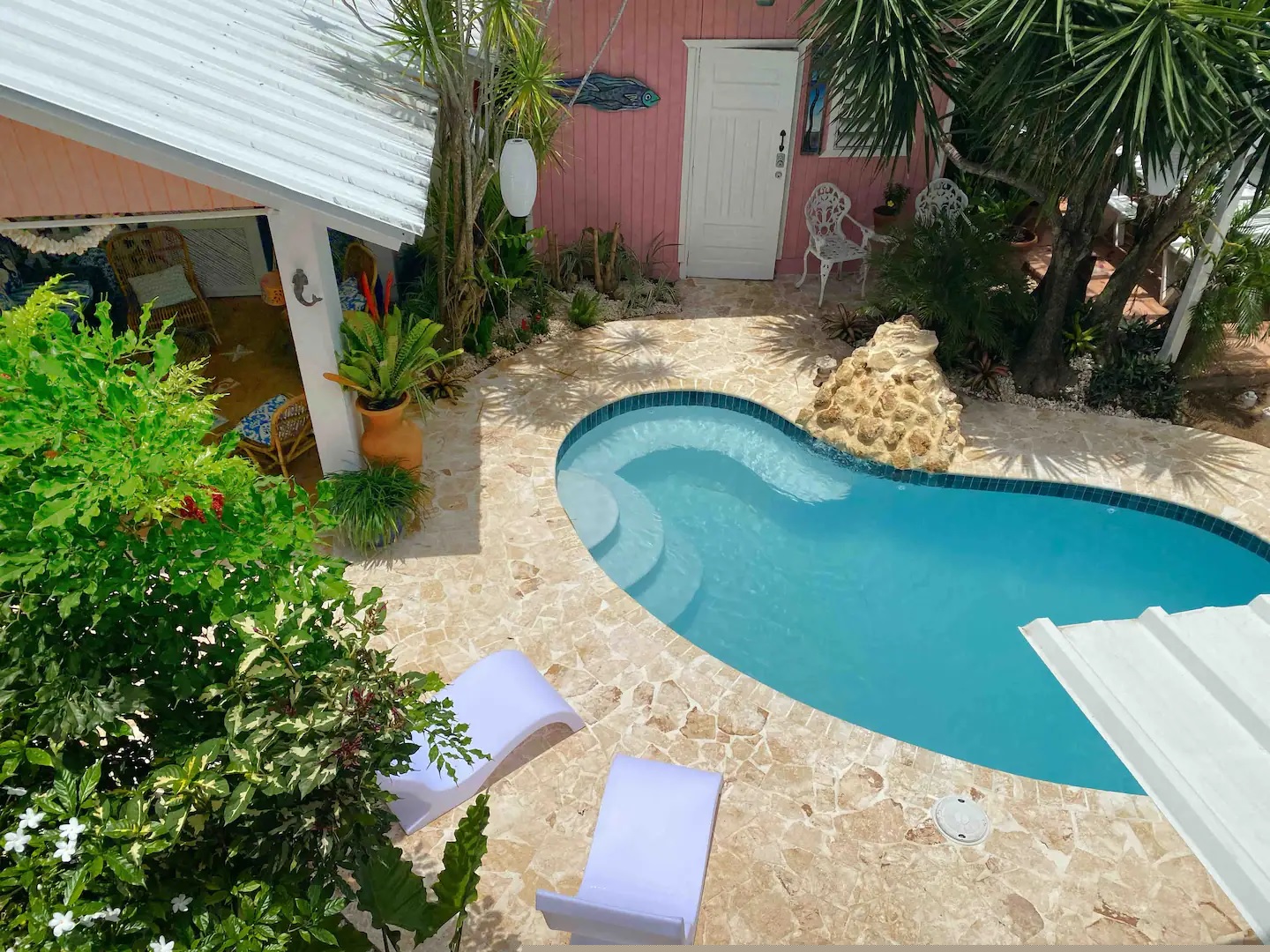 3 Bedroom, 2 and a half bath, Sleeps 5. This unique beach house with a private pool is in the quaint, desirable beach community of Sea Beach Colony, in the heart of Rincon. Only 5 houses from the beach, with ocean views, walking distance to the beach. Filled with art, and lovely furnishings, this tropical home offers the experience of Caribbean coastal life. The Main House has 2 bedrooms and 1 and a half bathrooms. The separate casita has 1 bedroom and 1 full bathroom. The outdoor kitchen, dining & living room are magazine worthy & there is even an outdoor soaking tub. WIFI throughout the house and AC upstairs. We have just made this charming family beach home with brand new pool available to share with guests. Our Cottage by the Sea is located in the most desirable beach neighborhood of Sea Beach Colony in the heart of Rincon, Puerto Rico. You will love the Key West verve with a bohemian flair of the artist owners. It has an outdoor kitchen, living room and dining area, tropical gardens and in ground pool and is only 5 houses from the beach. Enjoy beautiful ocean views, tropical breezes and the best swimming beach with a sandy bottom in Rincon. This Coastal Cottage has been enjoyed by our family for years. It is a special place for a discerning and special guest. Experience the coastal living life, boho beach elegance throughout with lovely furnishings, well equipped kitchen, flat screen TVs, all in a special Caribbean style you will love. WIFI throughout the House works great. This is a great home to work remotely from. Many couples choose to stay here on their own. The main house has a living room, dining room, kitchen and library, half bath on the main floor. This area is always cooled by tropical breezes and 5 Ceiling fans. There is no AC on the bottom floor. The Second floor features an amazing veranda with beautiful ocean views, hammock and seating area. All rooms feature an ocean view on the second floor. Master Bedroom with queen bed, A/C, Fan, the second bedroom with a built in single bed sleeps 1 with A/C and Fan. There is a family room with A/C large Smart TV, a full bath, and office space. There is an outdoor Casita separate from the main house for up to 2 guests in your group, with a double bed (full size) sleeps 1-2 and full bath A/C and ceiling fan. It is tiny but sweet. The outdoor living spaces are wonderful, with a covered outdoor living room with sofa and chairs, and an outdoor dining room. Full outdoor gourmet kitchen for the chef in the family with barbecue, extra burner, refrigerator, and sink. We have a full laundry room for your use. Enjoy our outdoor claw foot bath with running hot water! Located on a quaint street in a quite, friendly beach community, just steps to one of the best, calm swimming beaches in Rincon, and all of Puerto Rico. Walk to beach bars and restaurants, food trucks, grocery stores, as well as the downtown plaza for a variety of dining, bars and shopping, art galleries, art walk, and farmers market. Enjoy all our beach toys, and a single SUP. We have stocked everything you need for the beach including beach chairs, cooler and umbrella with beach wagon. This is a great house to rent for a month or more if you are working remotely. NOTE: This is an adult and older children only home. Only suitable for families with children ages 6 and older, Thank you for understating. It would be a pleasure to host you. Please feel free to reach out and ask any questions. We always have staff nearby to help. You will love our local recommendations, and knowledge of their area. Super cute safe and quiet neighborhood in the heart of Rincon. One of the most desirable areas to stay in here in Rincon. Location matters! Walk down the beach to Rincon of the Sea's Hotel where there is a great beach, or Villa Cofresi a favorite restaurant and beach bar in all of Rincon. You can easily walk downtown in minutes to enjoy the restaurants, shops, art walk, and farmers market. The Grocery store, bakery is at the end of the road, across the street. Great food trucks, fruit stands and close to beach bars. The best is our beach, calm swimming beach, sandy bottom. We highly recommend you rent a car for the best experience in Rincon. We have enclosed parking for one car. Other things to note: Our gardener may stop by to tend to the grounds. We also have Pool Service Weekly, property is shared with a few neighborhood cats we feed! We have several furry friends, neighborhood cats who like to visit. We keep a feeder for the cats which our staff takes care of. No animals are ever permitted in the home.